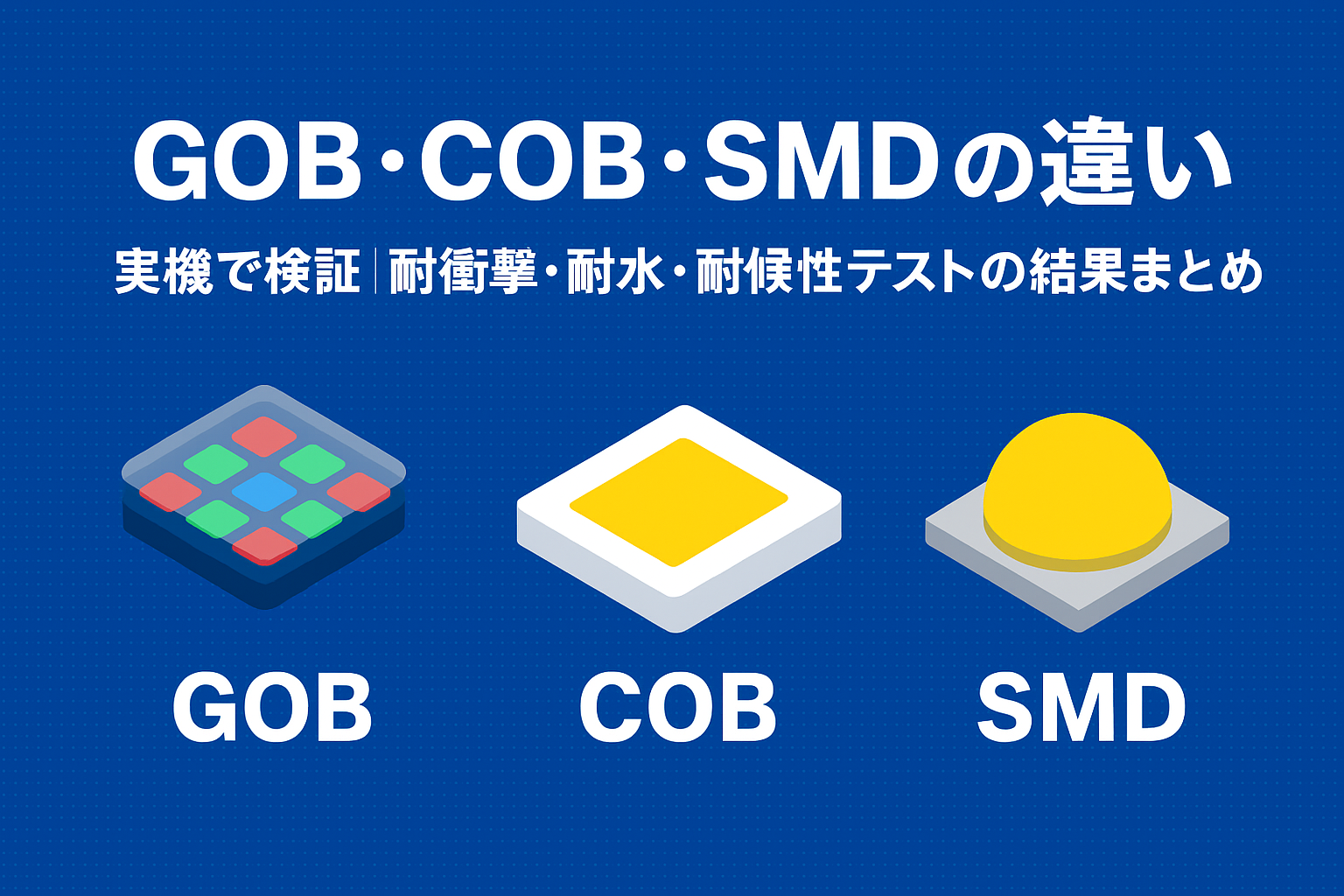 GOB・COB・SMDの違いを実機で検証|耐衝撃・耐水・耐候性テストの結果まとめ【初心者向け】】